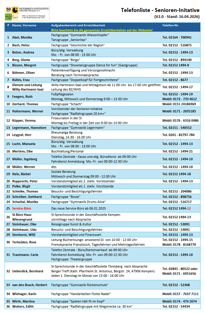 Telefon: 02152 - 1494 0E-Mail-Adresse: kontakt@altenhilfe-kempen.de